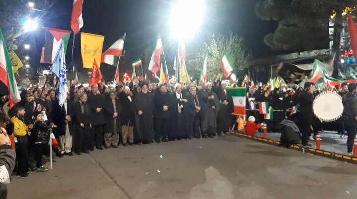 قزوین- مردم شهر خرمدشت تاکستان با حضور در خیابان ضمن حمایت از نیروهای مسلح بر علیه امریکا شعار دادند.