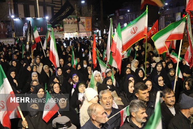 خلخال- اجتماع پرشور مردمی برای حمایت از رزمندگان اسلام و بیعت با رهبر معظم انقلاب اسلامی همزمان با شب پنجاه و پنجم در خلخال برگزار شد.