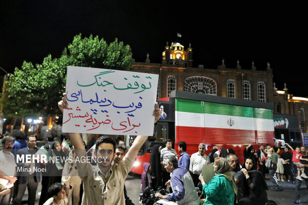 تبریز- مردم انقلابی و خستگی ناپذیر تبریز شامگاه شنبه با تدوام حضور در میادین اصلی شهر، به دشمنان نشان دادند استوار پای کار انقلاب ایستادهاند.