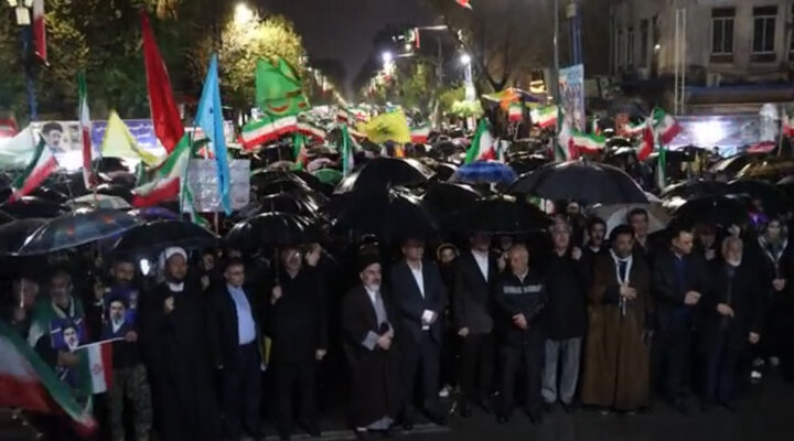 ارومیه – پنجاه و هفتمین موج از دریای خروشان غیرت و همت ارومیه‌ای ها زیر بارش باران ترجمان تجدید بیعت ولایتمداران این دیار با رهبر معظم انقلاب است.
