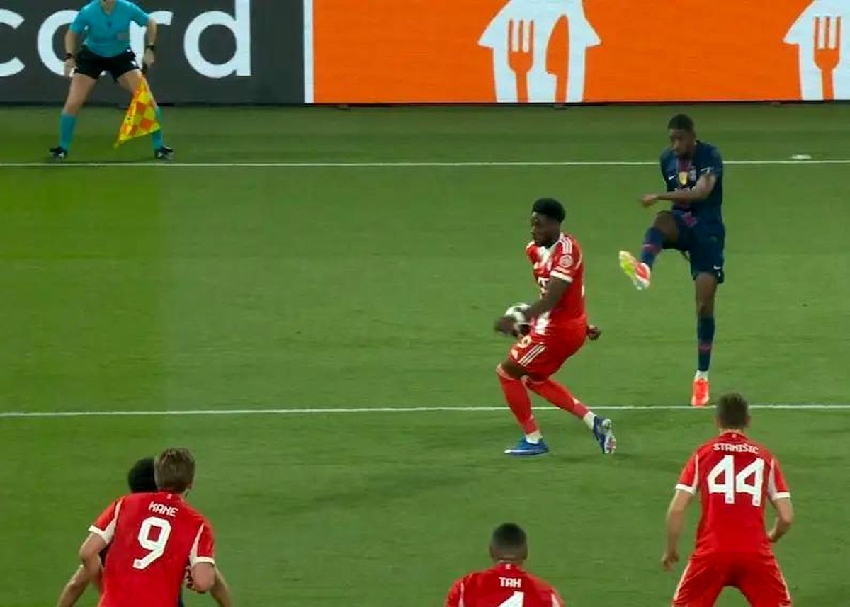 این صحنه زمانی شکل گرفت که ارسال عثمان دمبله در محوطه جریمه به دست آلفونسو دیویس برخورد کرد. داور سوئیسی مسابقه پس از بازبینی این صحنه با کمک سیستم VAR، نقطه پنالتی را نشان داد. این تصمیم با اعتراض دیویس و دیگر بازیکنان بایرن همراه شد، اما داور نظر خود را تغییر نداد.